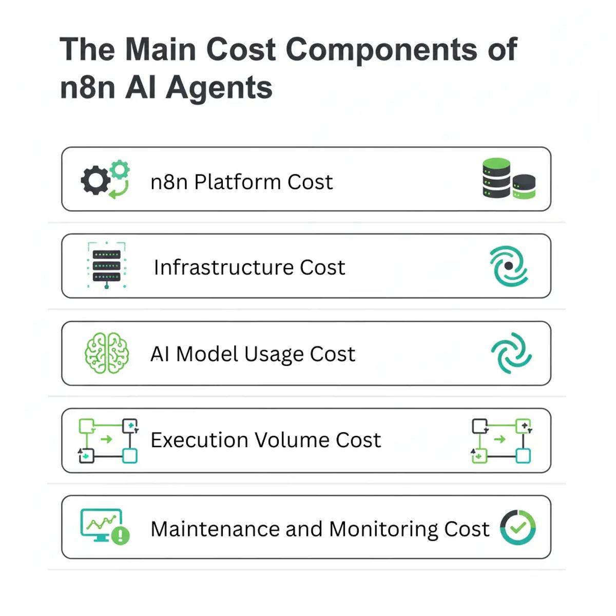 To understand the n8n AI agent cost properly, you need to look at it in layers. Each layer adds a different type of cost.