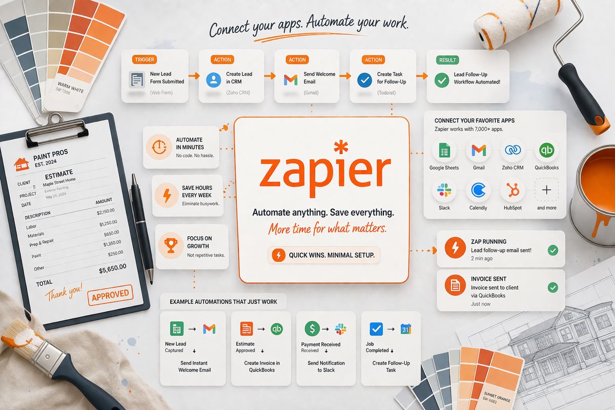 Zapier assists in automating those tedious tool transitions. Painting companies that wish to achieve rapid efficiency gains without completely revamping their system will find it extremely helpful.