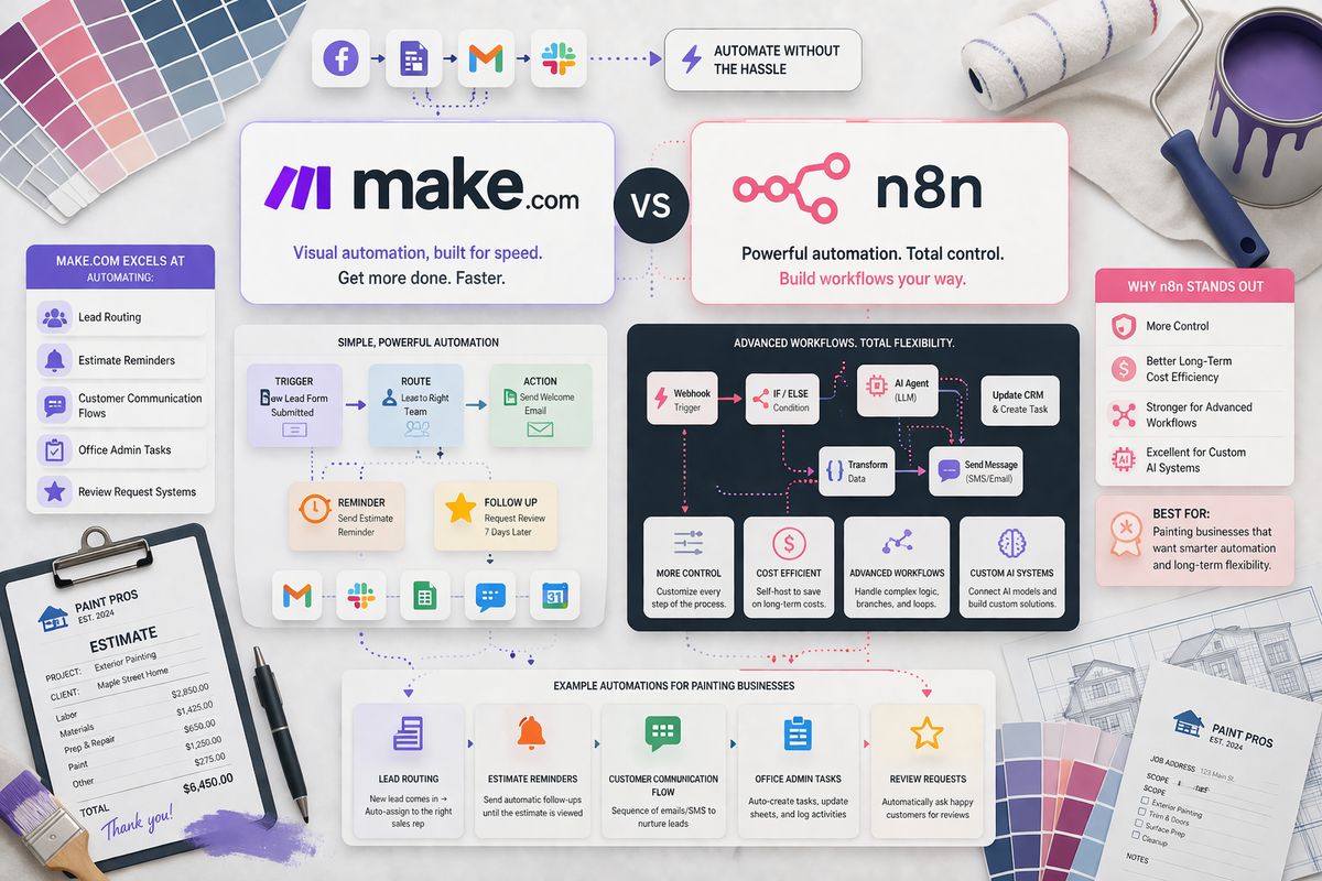When your painting business needs something more powerful, Make.com and n8n are what you look at if Zapier can handle basic automation.