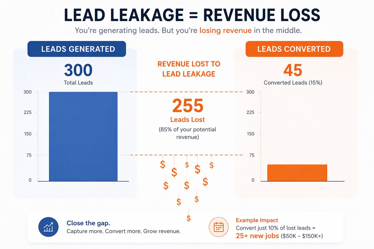 Even a 20–30% lead loss rate, combined with an average job value of $2,000-$3,000, can translate to six figures in annual lost revenue from leads you already paid to generate.