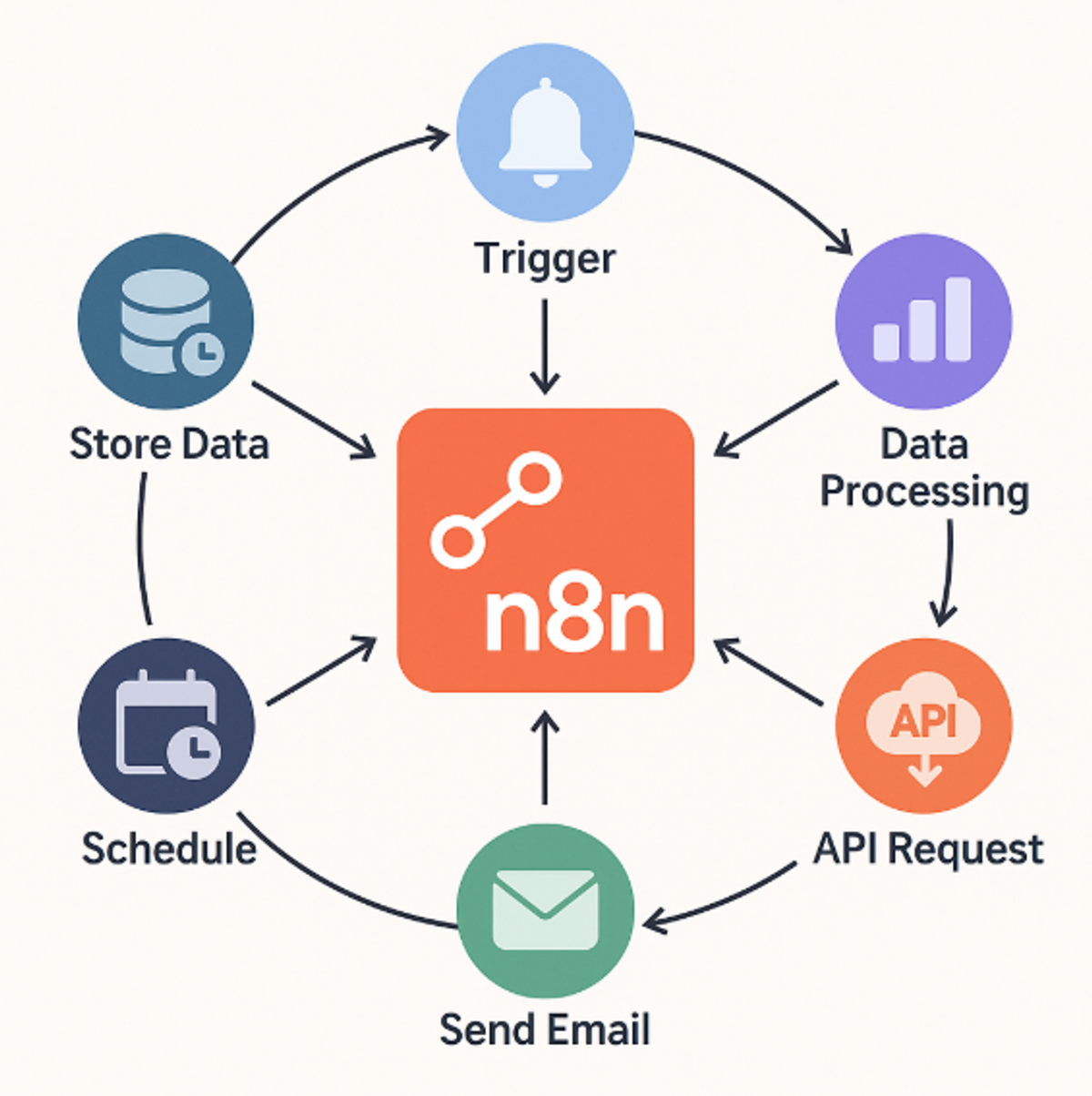 - N8n monitors all these sources (webhooks and APIs)