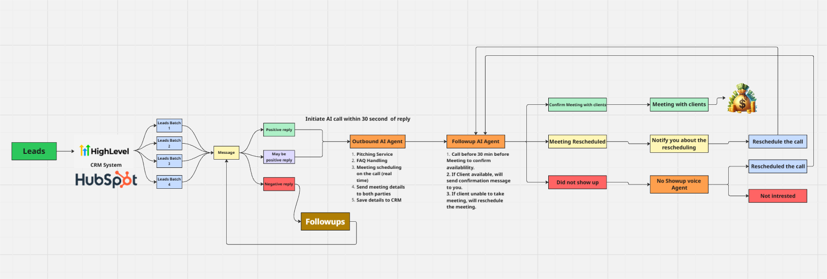 An AI outreach agent that connects with leads instantly, pitches your service, schedules meetings, and even reschedules no-shows — all while syncing to your CRM.